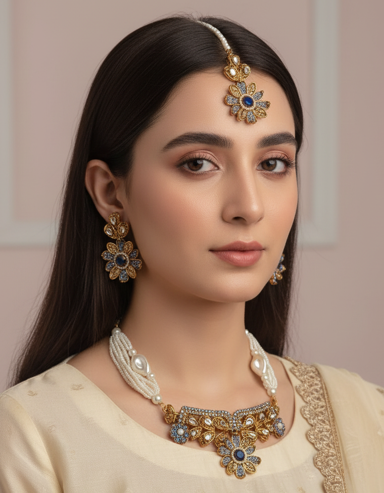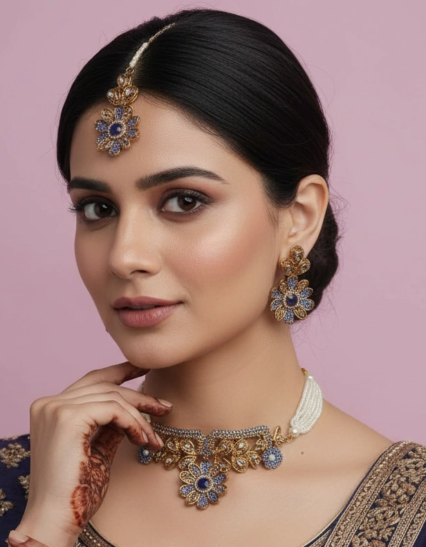Package Include: 1x Necklace set Include 1x pair of Earrings & 1x Bindi included